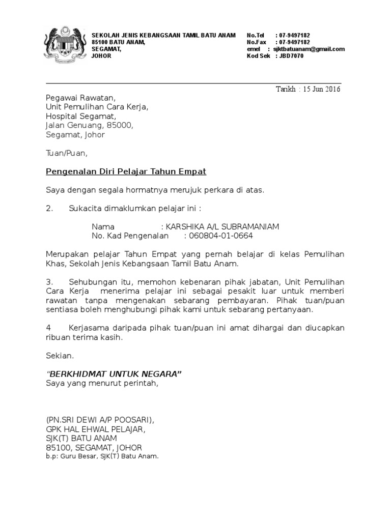 Surat Pengenalan Diri Pelajar Eswar Pdf
